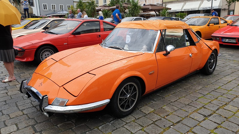 Nach der Führung gab es ein zwar kurzes, aber heftiges Gewitter mit starkem Platzregen. Die Autos wurden auf dem Marktplatz aufgestellt und trotz der feuchten Witterung waren viele Leute sehr interessiert an unseren Perlen.
